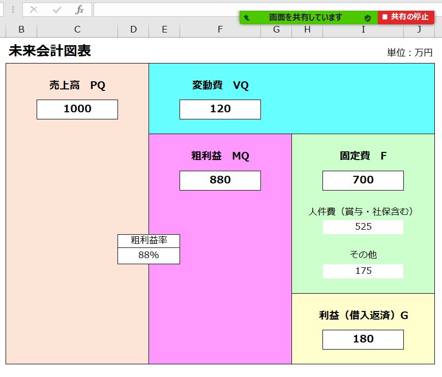 「でも、固定費を△△万円削減したら売上はあと□□万円で